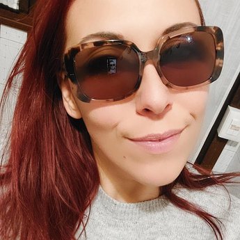 Pink and spotted frames.. brown corrective lenses and graduated