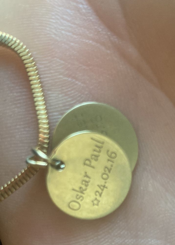 I lost a golden necklace with the kids names on it on the beachRelated objects